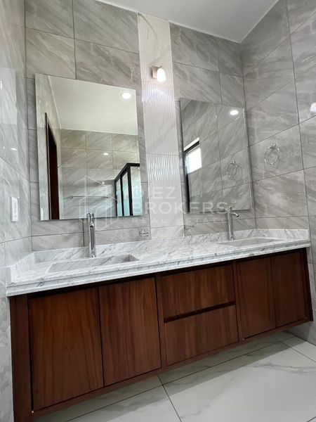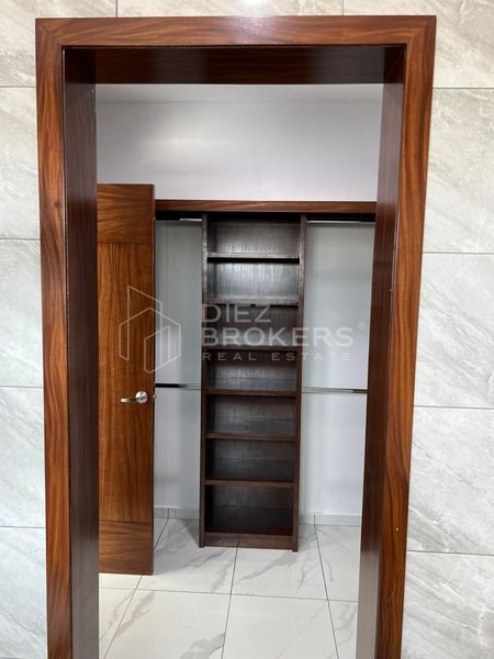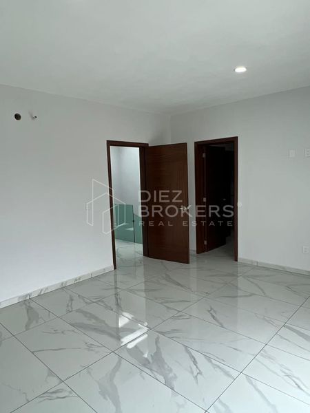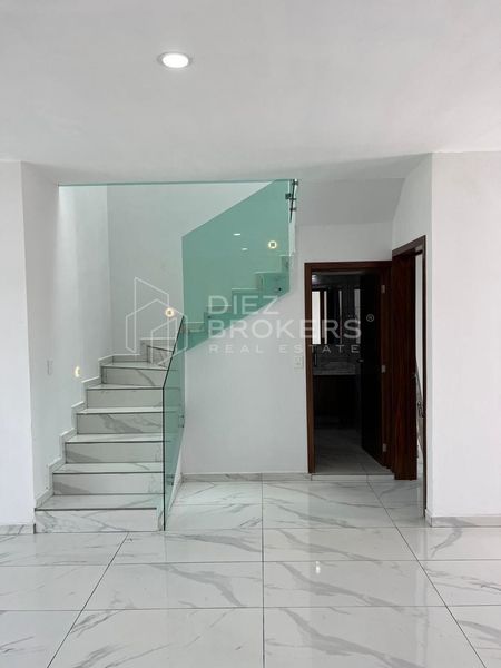 En la planta alta, se encuentra una amplia sala de estar y un clóset de blancos, ofreciendo espacio adicional para almacenamiento y relajación. La habitación principal es notable por su vestidor, proporcionando un espacio generoso para el almacenamiento de ropa y accesorios. Las recámaras secundarias también cuentan con baño propio y clóset, garantizando privacidad y comodidad para todos los residentes.