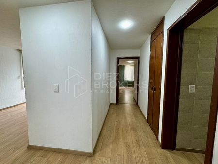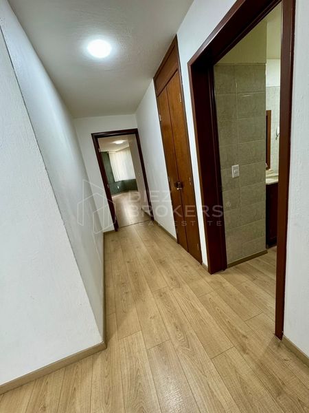 Amplio y bien ubicado departamento en el tercer piso, ideal para familias o parejas. Cuenta con una cocina equipada con barra desayunadora, espacio para comedor y sala, y un medio baño para visitas. Dispone de 3 recámaras: la principal con baño completo y vestidor, y dos recámaras secundarias con clóset que comparten un baño completo. Además, incluye un patio de lavado y 2 lugares de estacionamiento.
