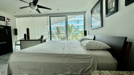 El edificio ofrece vigilancia 24/7 y acceso controlado, brindando seguridad y tranquilidad. Entre las comodidades del complejo se destacan las albercas, áreas verdes, beach club y un restaurante/bar, ideales para relajarse y socializar.
