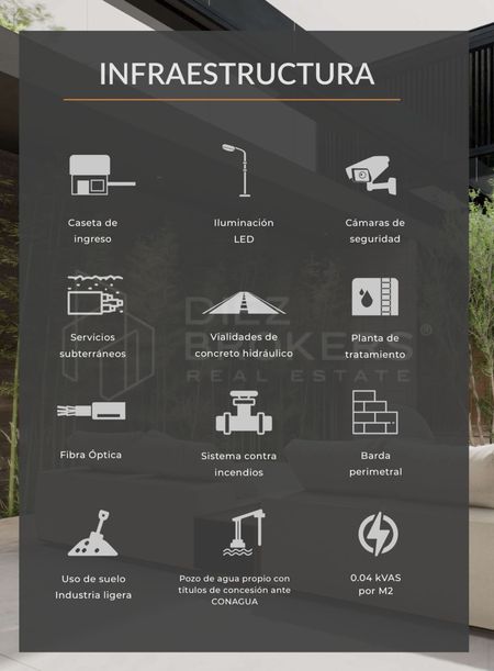 Elaborado con una infraestructura de primer categoría, como luz led, pozo de agua propio, planta de tratamiento, sistema contra incendios y seguridad privada.